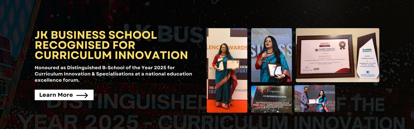 JK Business School, Gurugram has been honoured as Distinguished B-School of the Year 2025 – Curriculum Innovation & Specialisations at