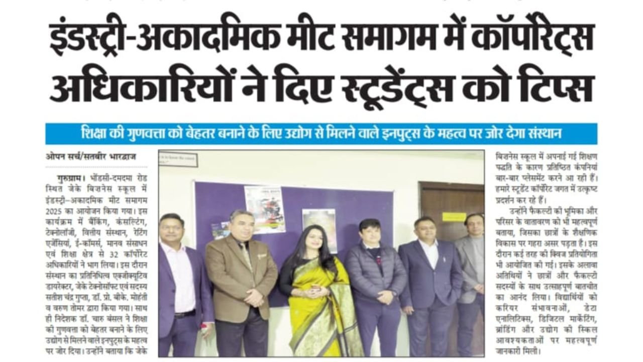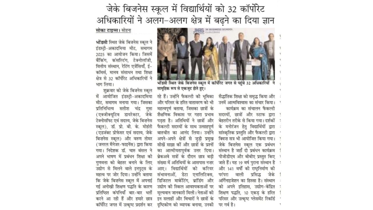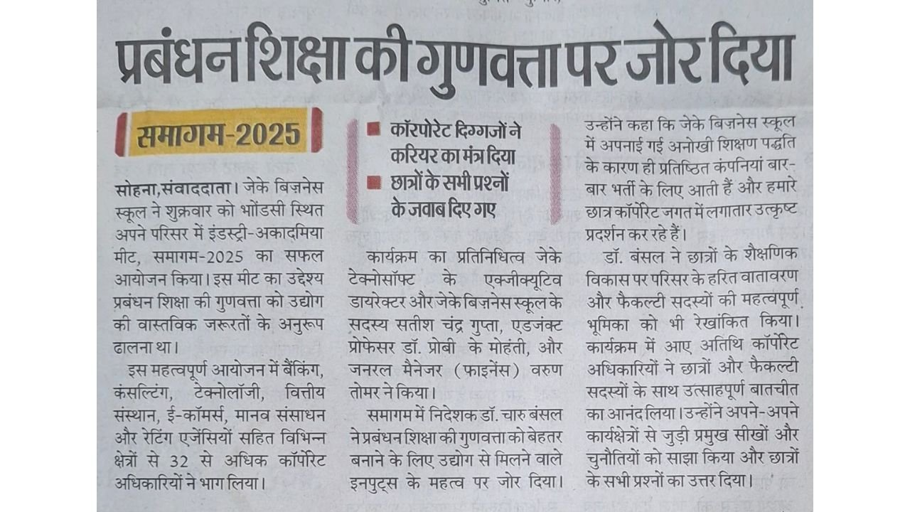 Samagam 2025 reaffirmed JK Business School’s commitment to bridging the gap between theory and practice. By fostering direct interaction between students and industry experts, the event served as a living example of JKBS’s educational philosophy – Learn, Innovate, Excel.