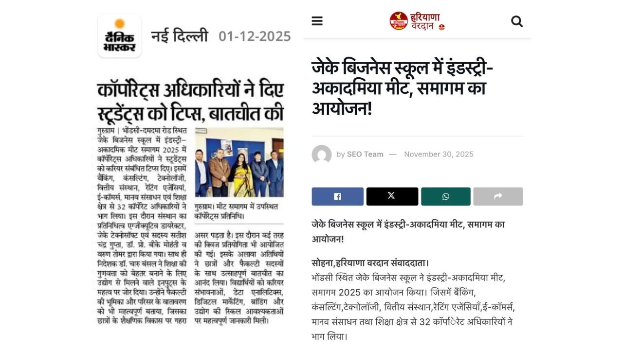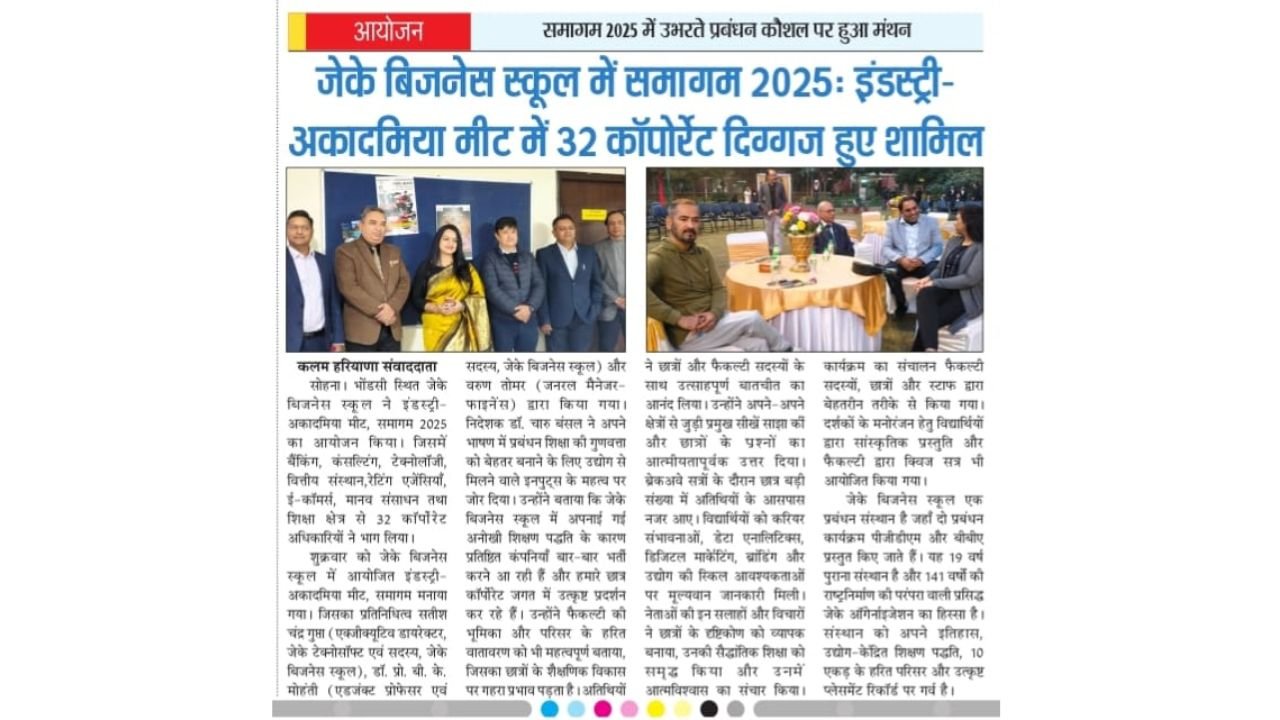 JK Business School, Gurugram (JKBS) organized its annual Industry-Academia Meet, Samagam 2025, on November 29, 2025, at its green residential campus. The event brought together 32 corporate leaders from diverse sectors including banking, consulting, technology, financial institutions, rating agencies, e-commerce, human resources, and education – creating an enriching platform for dialogue between industry and academia.