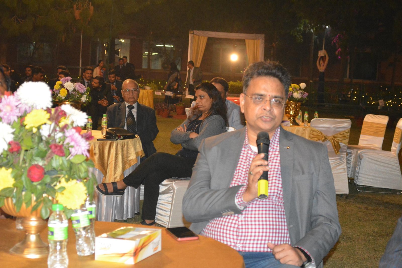 In her welcome address, Director Dr. Charu Bansal emphasized the importance of integrating industry perspectives into management education to enhance relevance and quality. She highlighted the unique teaching methodology at JKBS that blends conceptual learning with practical exposure, resulting in consistent corporate recognition and strong placement outcomes. Dr. Bansal also spoke about the institution’s focus on faculty excellence and its eco-friendly, green campus – both of which contribute significantly to students’ academic success and overall growth.